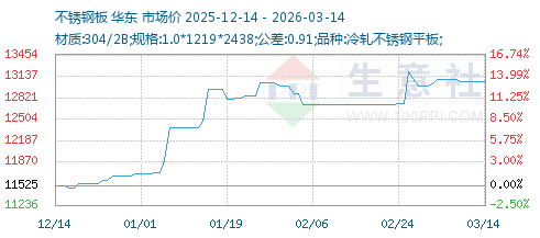 3月13日生意社不锈钢基准价为14433.33元/吨
